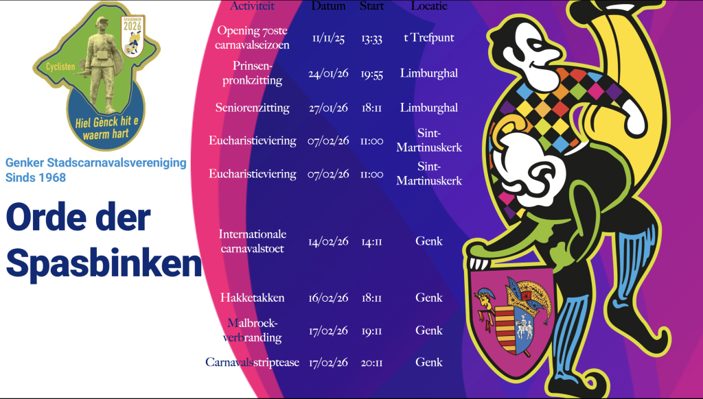 Kalender: Carnavalsseizoen in Genk 2025 - 2026